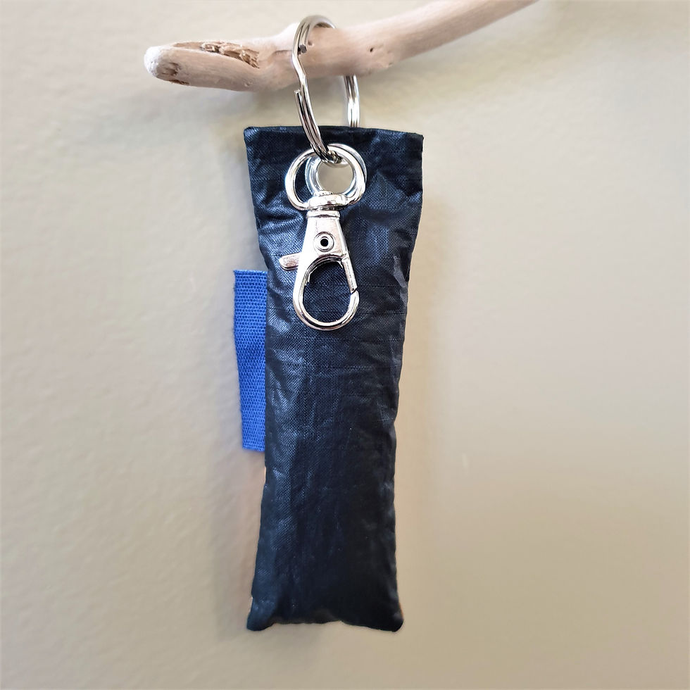 Les paillettes peuvent aussi devenir matière première utile, comme en témoignent ici ces porte-clés, conçus de matière ré-utilisée (ailes de kitesurf recyclées et paillettes de plastiques sauvages de la mer). Une nouvelle concrétisation de projet d'économie durable...